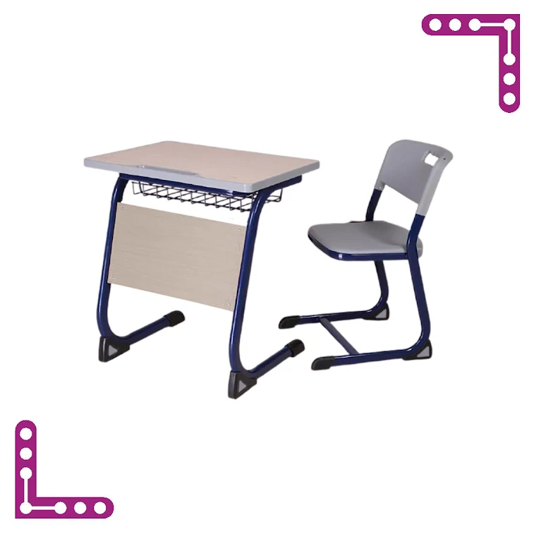 Selain itu, meja kursi ini dilengkapi dengan lapisan karet pada kaki kursi dan meja agar tidak merusak permukaan lantai ketika digeser. Terdapat juga pengait untuk menggantung tas atau payung serta Steel Wire Drawer yang dapat digunakan untuk menyimpan alat tulis dan perlengkapan lainnya. Perlengkapan ini sangat cocok untuk digunakan di sekolah modern karena kokoh dan kuat.