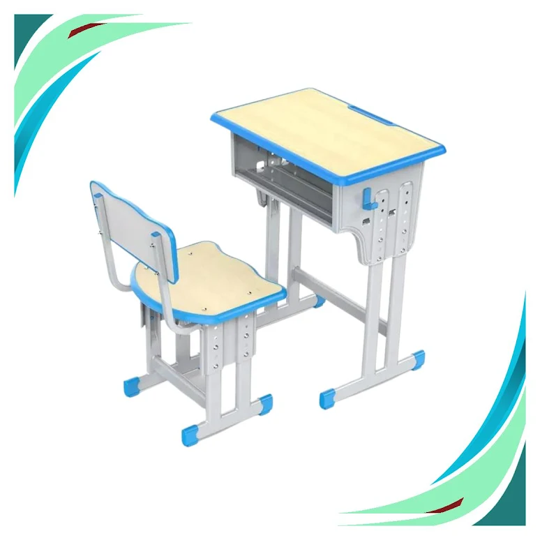 Meja dan kursi ini sesuai untuk kebutuhan sekolah modern dengan dilengkapi pengait untuk menggantung tas atau payung dan lapisan karet pada kakinya mencegah kerusakan pada lantai. Meja dan kursi ini juga dapat diatur tinggi rendahnya sesuai kebutuhan dengan desain yang kokoh dan kuat, memberikan kenyamanan dan kualitas yang baik untuk kegiatan belajar mengajar di sekolah