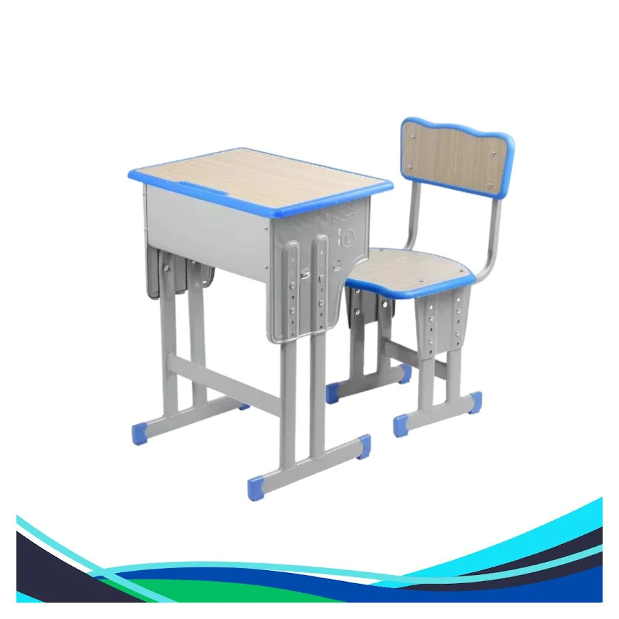 Meja dan kursi adalah dua benda yang sangat penting dalam lingkungan sekolah. Dalam deskripsi ini, dijelaskan mengenai meja kursi sekolah modern dengan merek 02 Annapurna. Meja kursi ini terbuat dari material steel wood structure dengan lapisan karet pada bagian bawahnya agar tidak merusak permukaan lantai ketika digeser.