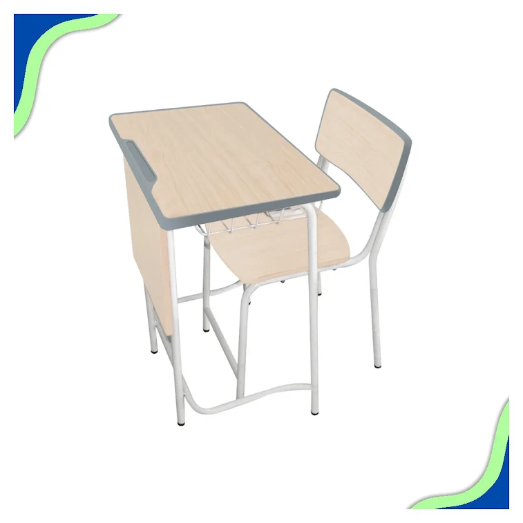 Bahan metal dan kayu berkualitas serta finishing powder coating menjadikan produk ini tahan lama dan mudah dalam perawatannya. Selain itu, pengait di sisi meja juga memudahkan siswa untuk menggantung tas atau jaket mereka, sehingga ruangan tetap rapi dan terorganisir. Meja dan kursi ini juga dilengkapi dengan kaitan yang membuatnya kokoh dan kuat, sehingga bisa diandalkan dalam jangka waktu yang lama.